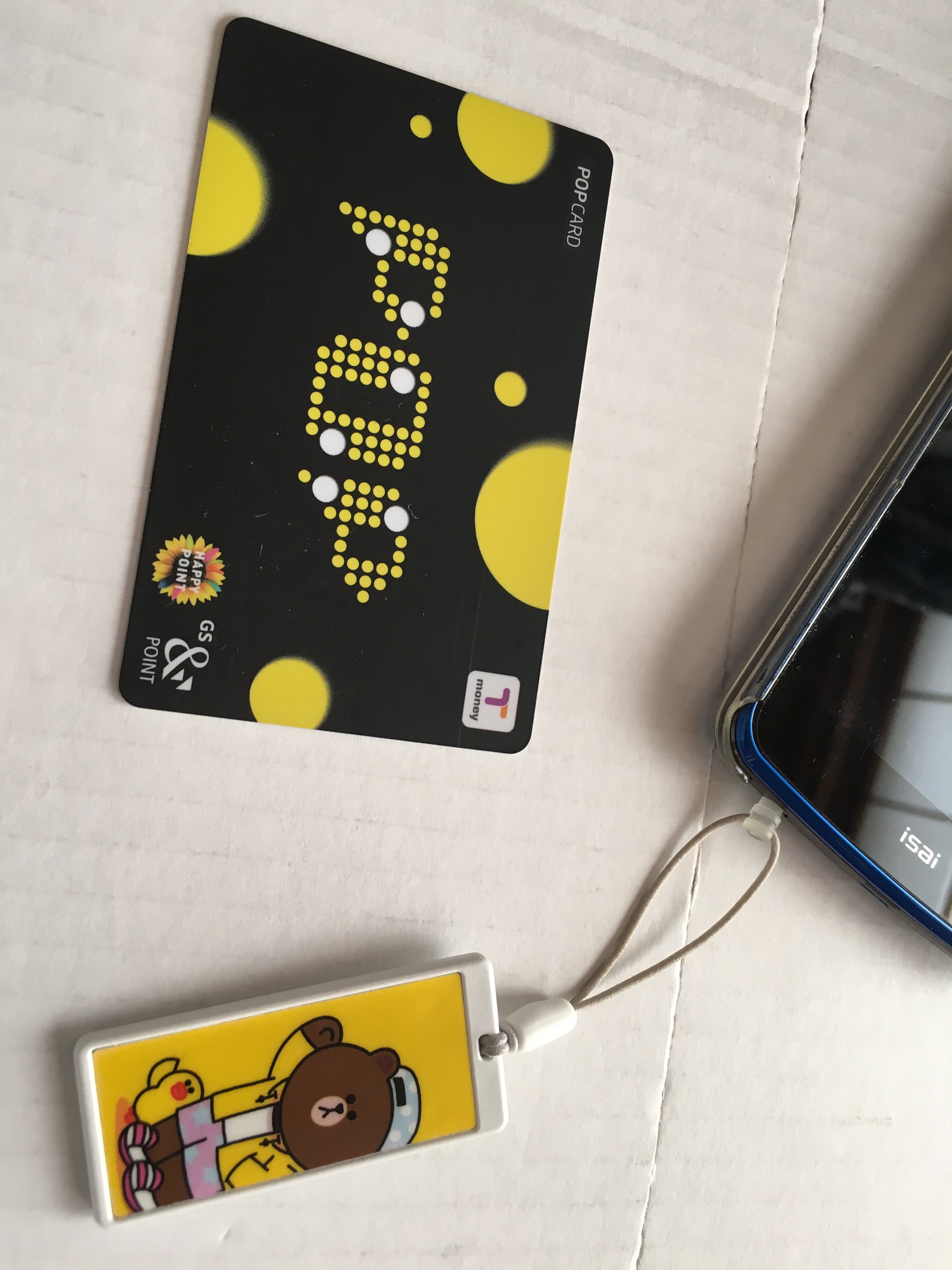 最近はカードではなく携帯マスコットのタイプが出てきて、K-POPのアイドルなどのものがコンビニで売ってます。私はLINEのくまさんにしました。