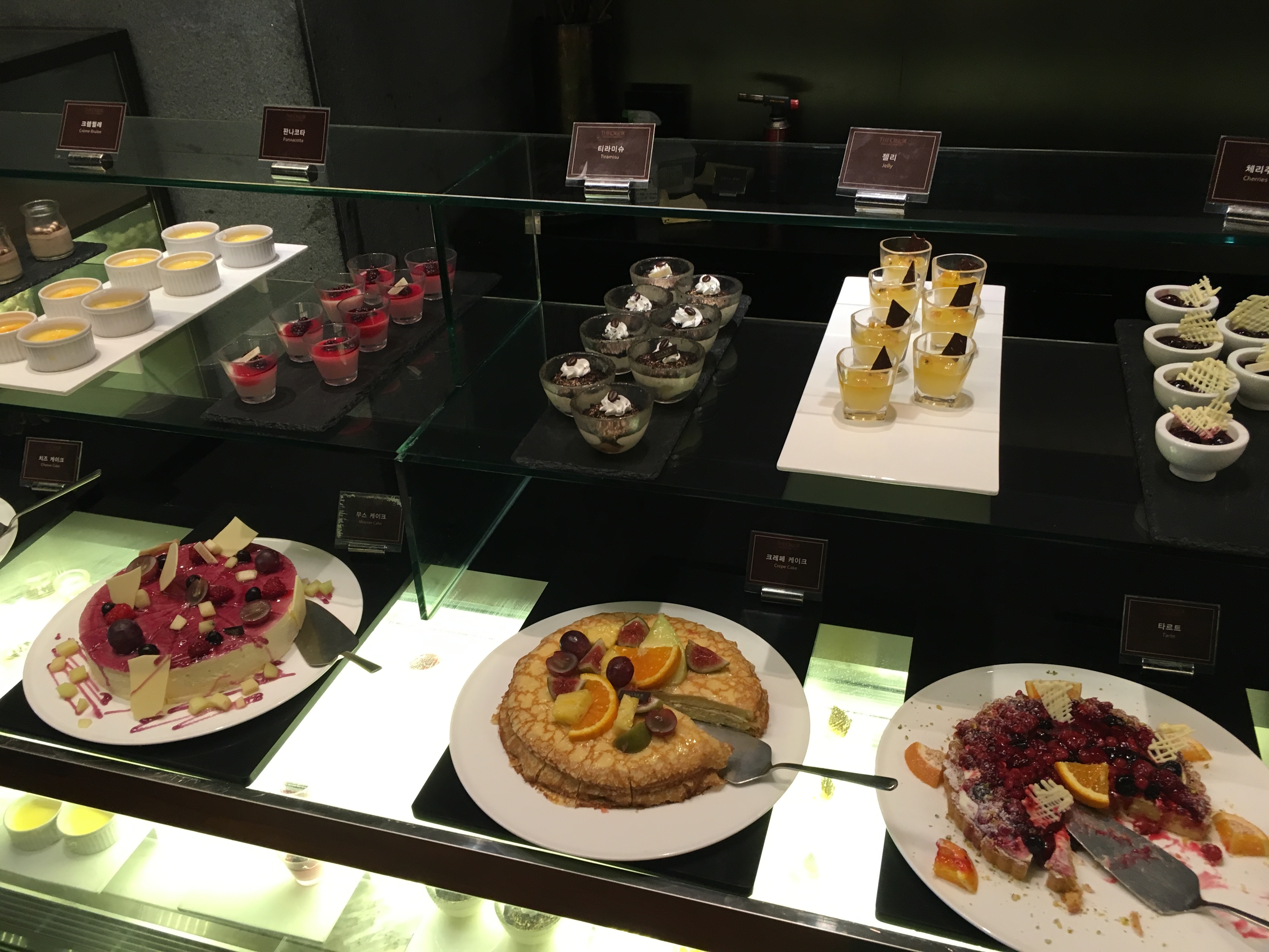 まずはCOEX展示場のホールのレストラン。ブッフェ形式で食べきれないほどの種類。今回はケーキを重点にいただきました。